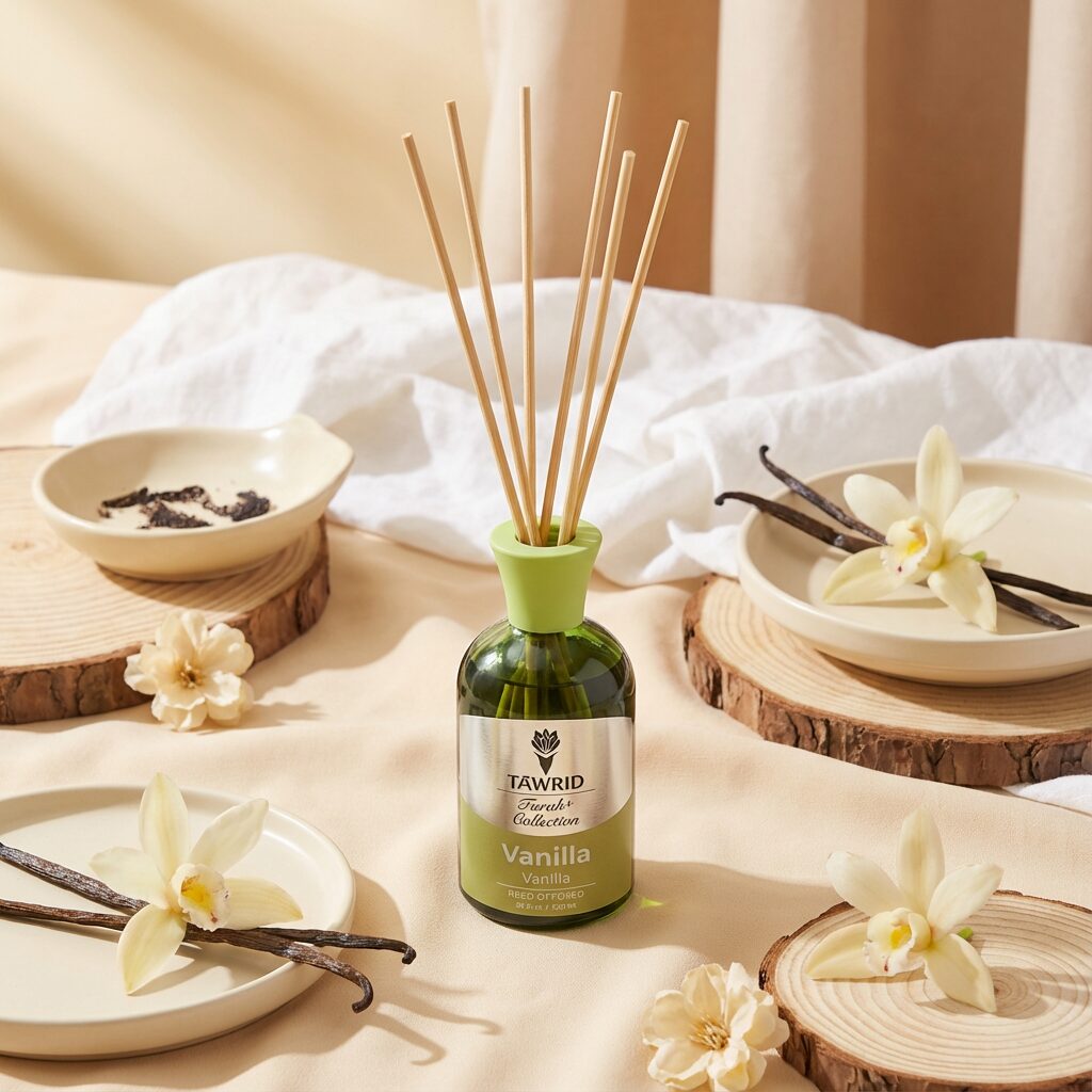 Odorizant camera cu betisoare si mostra de parfum inclus, Farah Plus, vanilie, 100ml